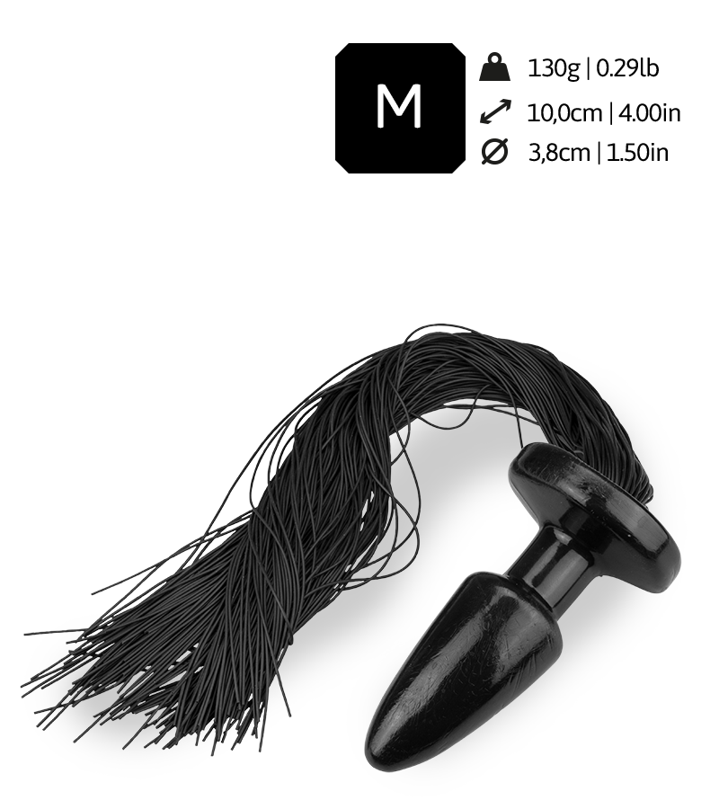 Der Plug aus leicht nachgiebigem PVC verfügt über eine schmale Spitze und einen 6 cm breiten Stopper. Dank der schmalen Spitze lässt sich der Plug einführen. Der Stopper sorgt dafür, dass bei Ihrem erotischen Spiel nichts verrutschen kann. Die weichen Riemen aus Silikon haben eine Länge von 31 cm. Sie streichen bei jeder Bewegung über die Oberschenkel von Träger oder Trägerin oder lassen sich als Peitsche nutzen.
