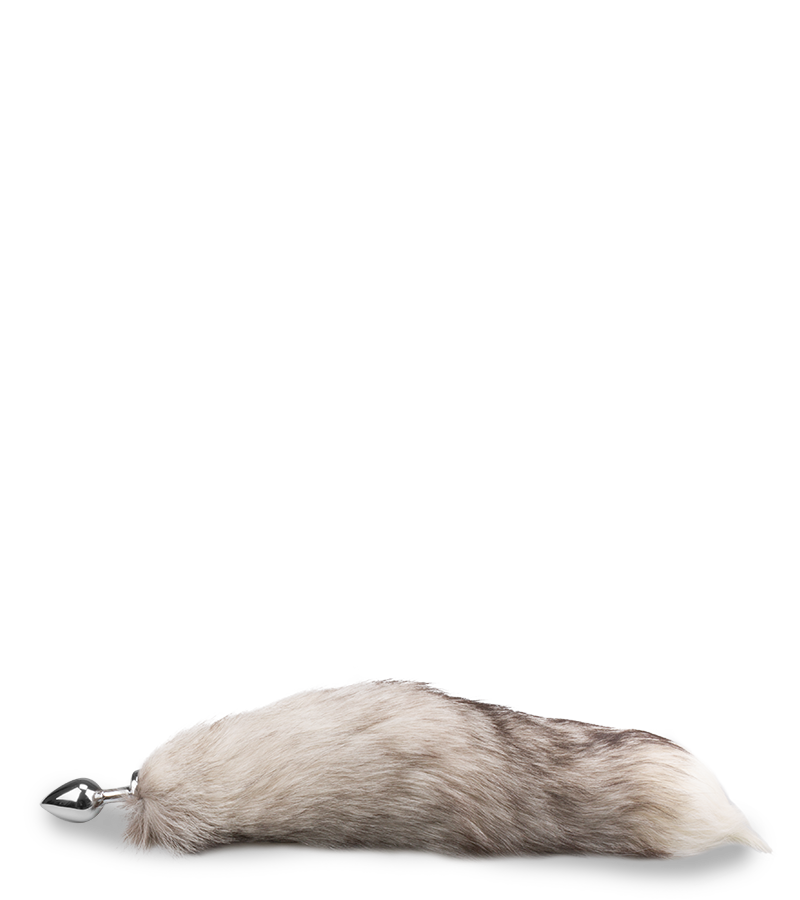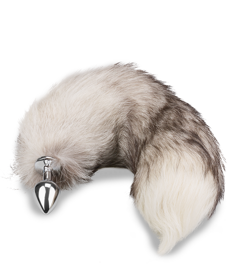 Grau-weißer Fuchsschwanz-Buttplug mit echtem Fell