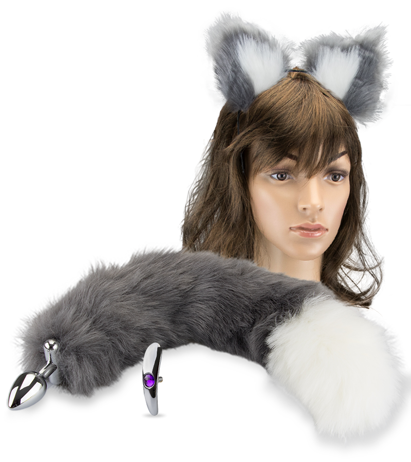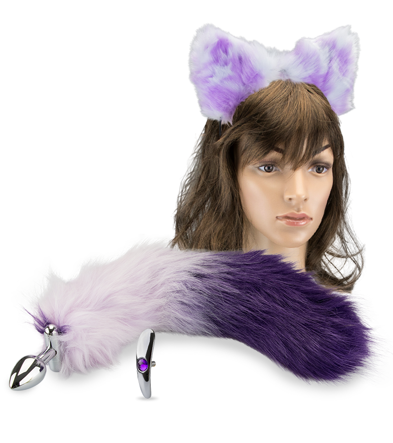 Katzenschwanz-Plug mit Katzenohren-Haarreif