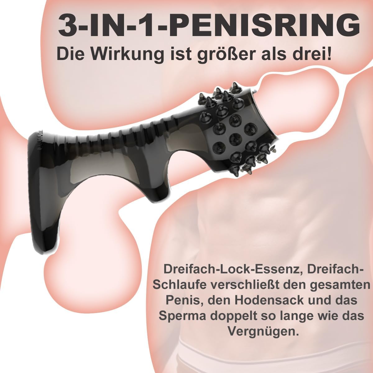 • 3-in-1-Penisring: Platzieren Sie das Ring-Sexspielzeug auf dem Penis oder den Hoden, der Drei-in-Eins-Penisring bindet Ihren Penis und Ihre Hoden, das ringförmige Sexspielzeug für Paare ist äußerst stimulierend und kann den Blutfluss effektiv verzögern und die männliche Ausdauer verbessern. Gleichzeitig kann das Granulat dieses Penisrings die weibliche Klitoris und Vagina stark stimulieren, das Vergnügen steigern, ein perfektes sexuelles Erlebnis schaffen und einen doppelten Orgasmus für Männer und Frauen erzielen.