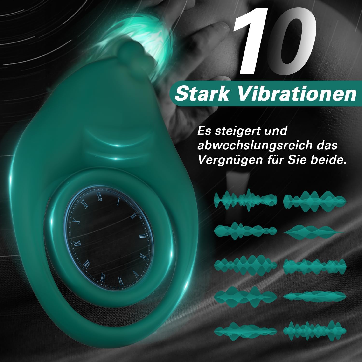 Dual Penisringe Vibrator, Dehnbarer Vibratorensets für Männer Sexspielzeug mit 10 Modi Penis Stimulation G-Punkt Vibrator, Erotik Sex Spielzeug für die paare, Grün