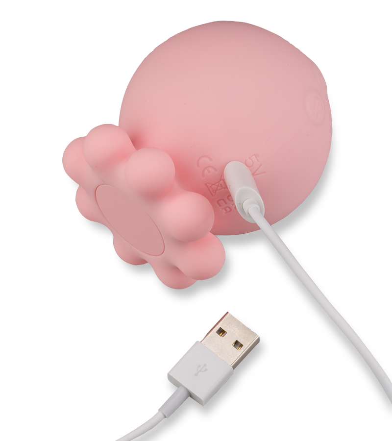 1. Laden Sie das Sexspielzeug zunächst etwa 2 Stunden lang auf. Schließen Sie das USB-Ladekabel in die Buchse auf der Rückseite des Sexspielzeugs ein.