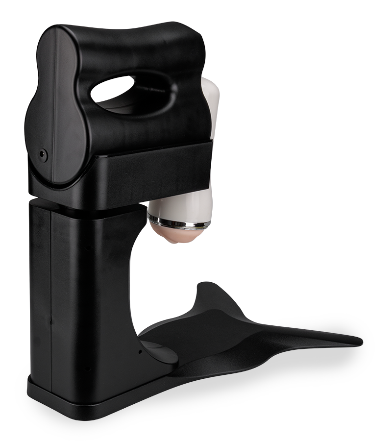1. Nehmen Sie den Masturbator an seinem Griff und schieben Sie ihn auf die Halterung.