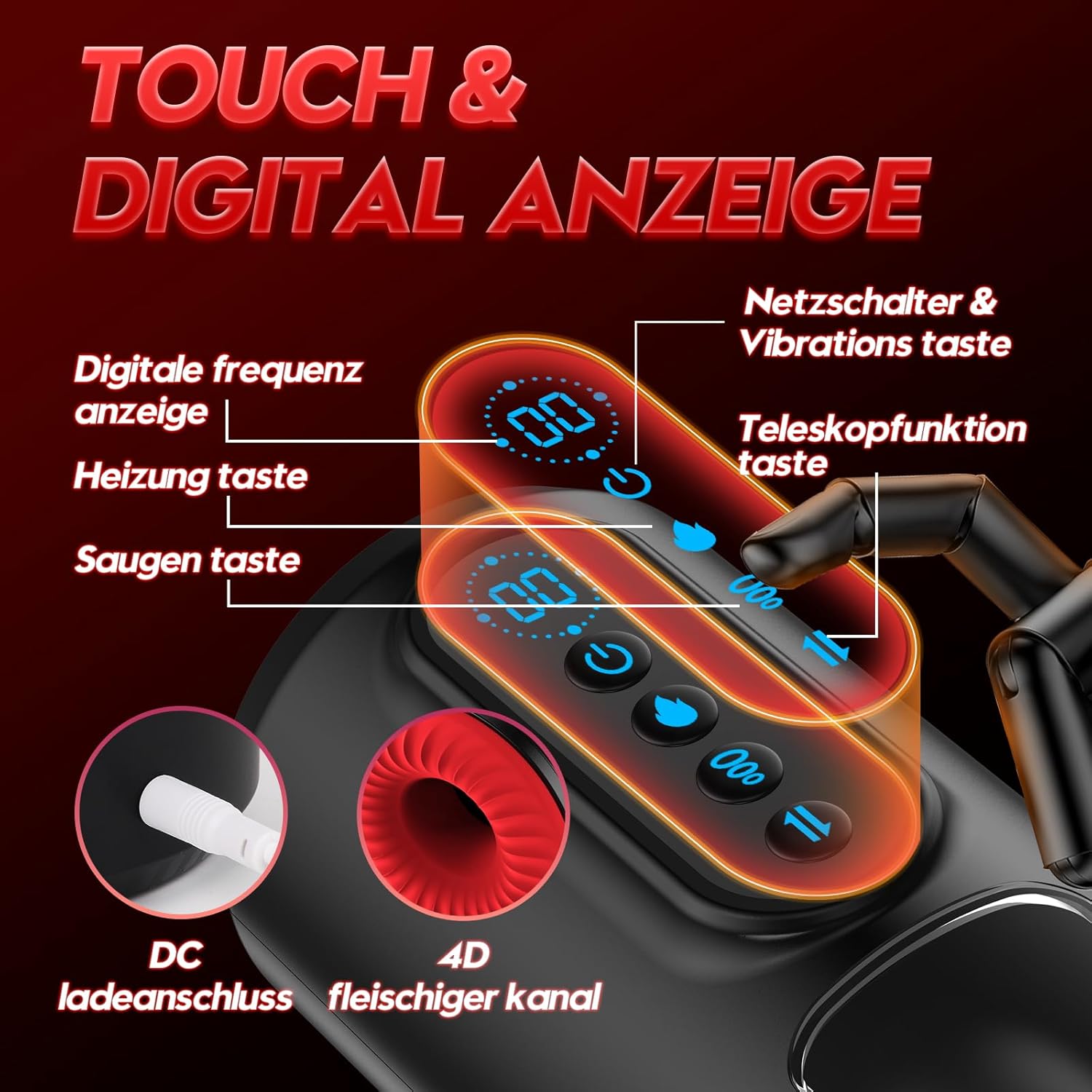 Masturbieren für Männer Masturbator, Sex Spielzeug für die Männer mit 9 Teleskopfunktion & Saugmodi & Vibration, Taschenmuschi Blowjob Masturbatoren, 3D Realistisch Vagina Heizung LCD Display Sex Toys