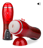 Der Masturbator funktioniert voll automatisch. Lehnen Sie sich einfach zurück und genießen Sie den stimulierenden Massageeffekt des genoppten und gerillten Vagina-Sleeves, der sich bei jedem Auf und Ab bemerkbar macht. Die Stoßbewegung kann in 4 unterschiedlichen Modi genutzt werden. Die Audiofunktion, die Sie entweder über den Lautsprecher oder per Kopfhörer (nicht enthalten) nutzen können, versetzt Sie in die passende Stimmung.