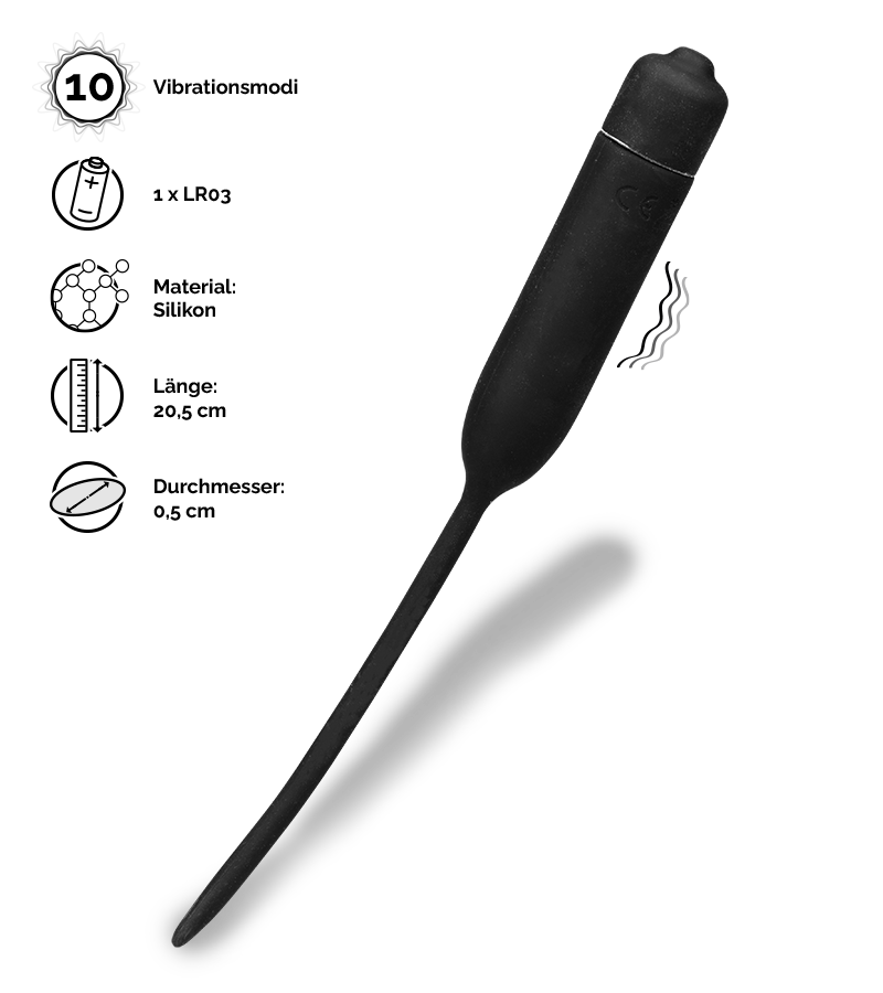 Dieses Sexspielzeug ist das perfekte Accessoire für alle, die auf Katheterspiele stehen. Der Harnröhrenvibrator aus Silikon kribbelt und prickelt über die ganze Länge, wenn Sie die Vibrationsfunktion starten und einen der zehn verfügbaren Modi auswählen. Lassen Sie sich dabei einfach von Ihrer Lust auf neue sinnliche Erfahrungen treiben.