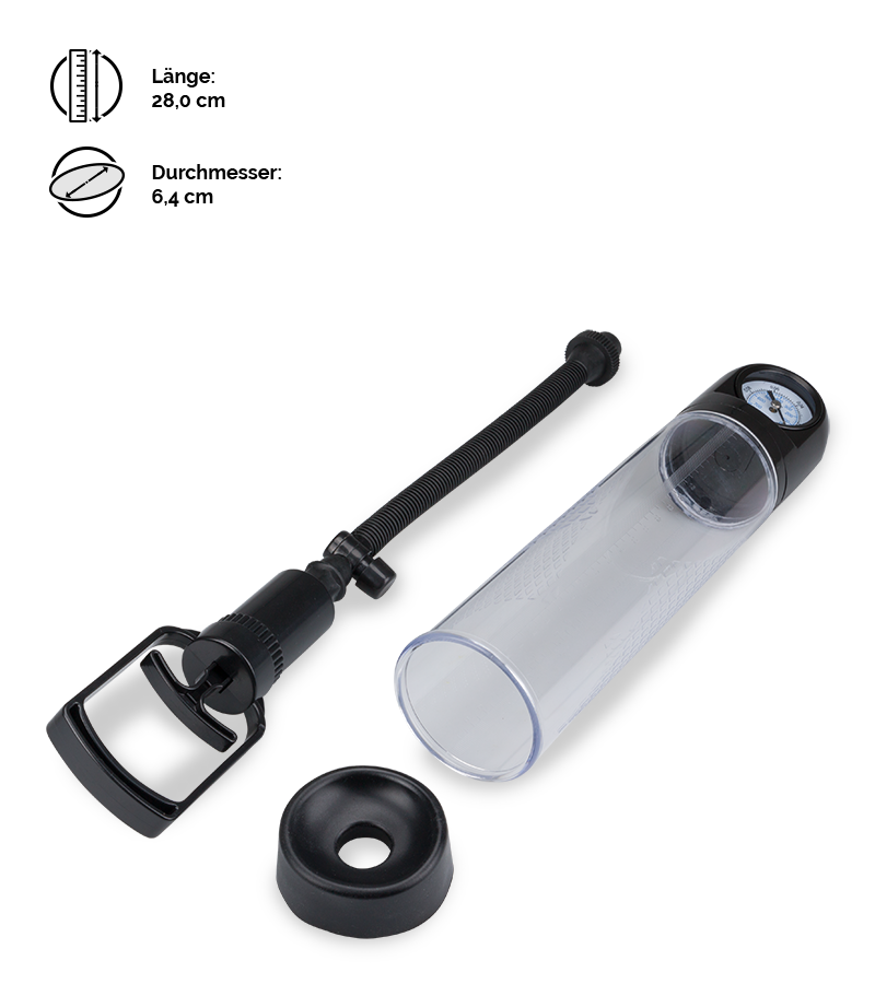 Die manuelle Penispumpe Chunky ist einfach zu bedienen und sorgt für große Effekte. Eine kurze Zeit Pumpen reicht schon aus, um das beste Stück um ein paar Zentimeter zu verlängern. Der integrierte Druckmesser und der durchsichtige Zylinder mit Messskala ermöglichen es Ihnen, genauestens mitzuverfolgen, wie Ihr Penis sich vergrößert. Um sicherzustellen, dass keine Luft in den Zylinder eindringen kann, ist im Lieferumfang ein Aufsatz enthalten.