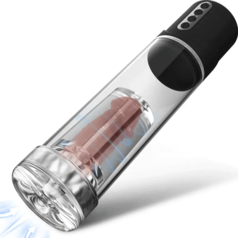 Beobachten Sie, wie Ihr Schwanz in dem langen, transparenten Raum wächst! Sie werden von der zusätzlichen Größe und Superhärte begeistert sein! Ein transparenter Zylinder überbrückt den schwarzen Griff, eingebettet in einen leistungsstarken Motor und eine reich strukturierte, ultraelastische TPE-Hülle im Inneren. Aufregende Falten, Beulen und Fäden drücken und treffen Ihren Schwanz, und die 4-Stufen-Saugkraft hilft bei ihrer Kraft. Charmanteres Saugen als je zuvor! Darüber hinaus wird Ihr langjähriger Wunsch nach Penisleistung befriedigt. Beginnen Sie Ihre glückliche Reise, drücken Sie lange die Ein-/Aus-Taste, um zu beginnen, und drücken Sie die +/- Taste, um den Sauggrad zu ändern. Um übermäßiges Saugen zu verhindern, gibt es einen Knopf, der speziell entwickelt wurde, um den Druck im Inneren des Zylinders abzulassen. Ihr geschwollener Schaft wird sehr geschätzt!