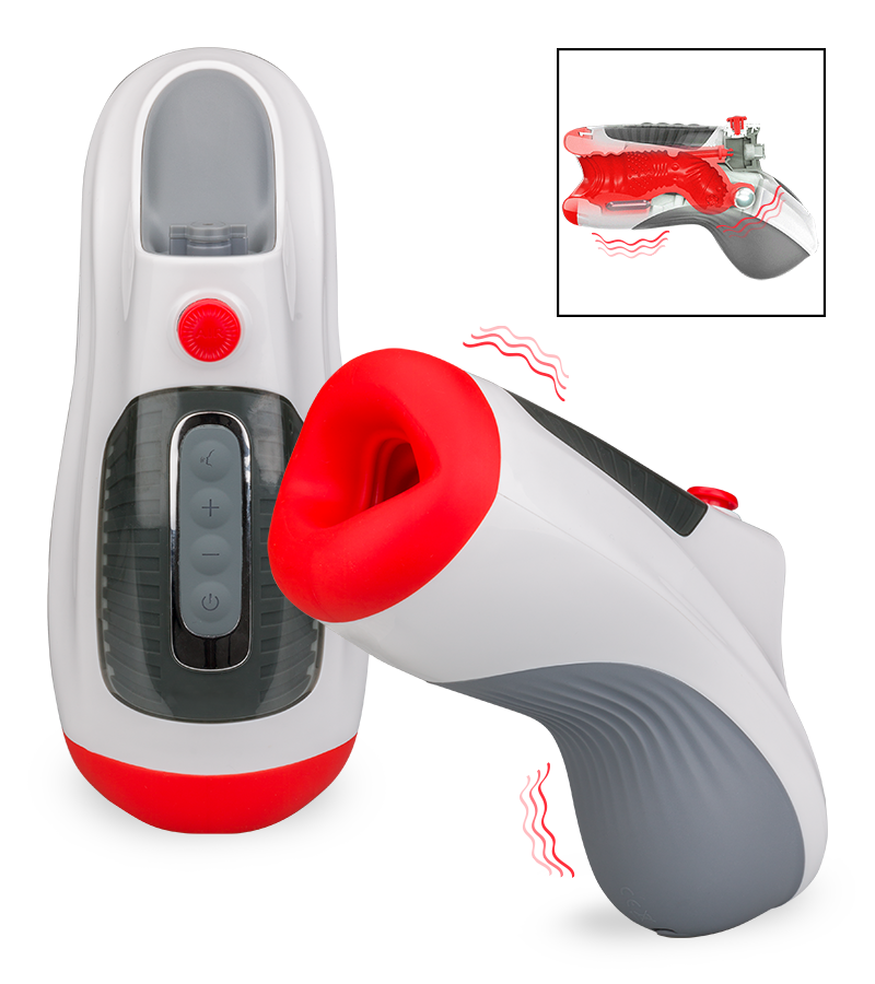 Der Masturbator ist ein echtes High-Tech-Sextoy, das alle Liebhaber von automatischen Masturbatoren begeistern wird. Die Öffnung mit dem leicht gekrümmten Lusttunnel erinnern an einen weichen Mund. Die zahlreichen Noppen und Erhebungen auf der Innenseite und das weiche, elastische Material vermitteln ein realistisches und gefühlsechtes Blowjob-Feeling. Sobald Sie den Penis in die Öffnung einführen, beginnt der Masturbator die Luft nach hinten einzuziehen und bereitet Ihnen dadurch ein intensives Lusterlebnis. Die Saugfunktion stoppt erst, wenn Sie den Penis wieder aus dem Lusttunnel ziehen. Für die Vibrationen verfügt der Masturbator über 2 Motoren. Der eine sitzt vorne und erzeugt konstant Vibrationen, während sich der zweite im hinteren Bereich erst dann einschaltet, wenn der Penis komplett eingeführt ist. Insgesamt stehen Ihnen 10 unterschiedliche Modi zur Verfügung. Wenn Sie während des Blowjobs nicht auf sinnliches Stöhnen verzichten möchten, schließen Sie einen Kopfhörer an den Masturbator an und lassen Sie sich überraschen!
