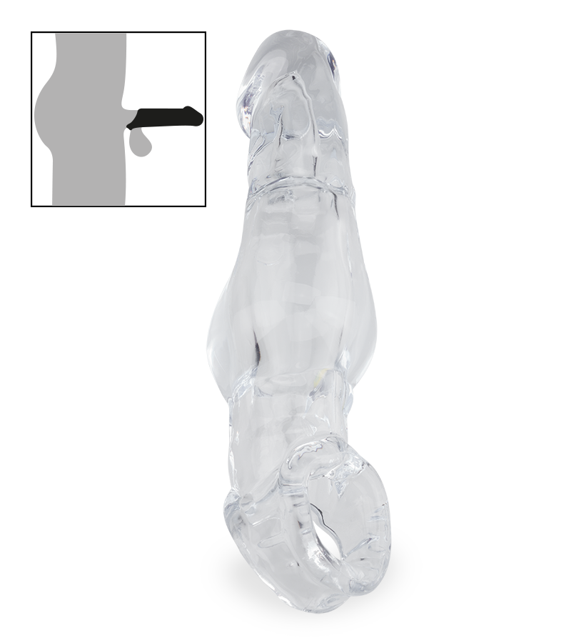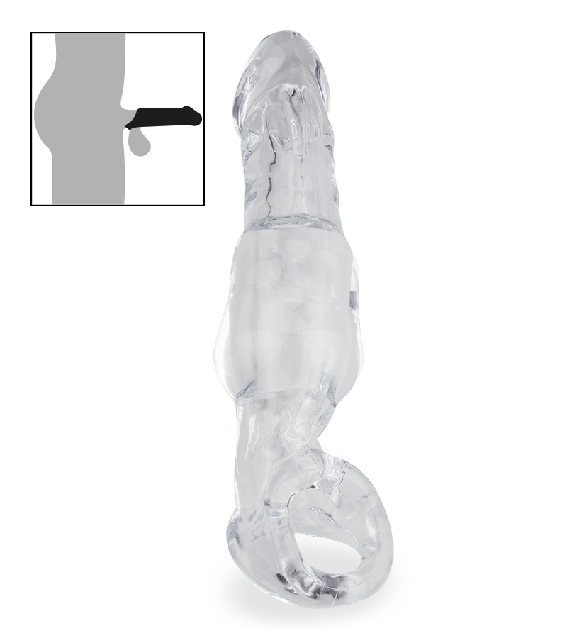 Die Penishülle macht Ihr Liebesspiel intensiver, indem Sie Ihrem besten Stück mehr Länge und Umfang schenkt. Außerdem kann die Penishülle bei Erektionsproblemen helfen. Wie eine zweite Haut legt sich die weiche Penishülle über Ihren Penis. Der Hodenring sorgt für einen optimalen Sitz.