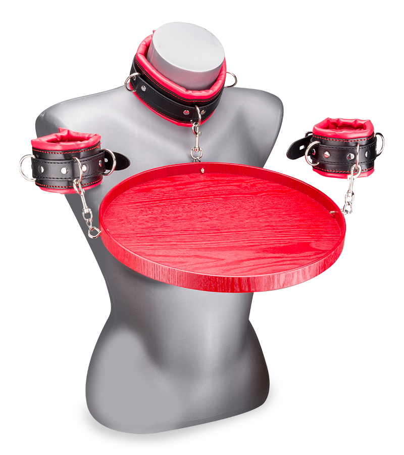 Hals- und Handfesseln mit Tablett für Sub