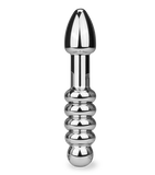 Der große Analplug ist ein außergewöhnliches Sexspielzeug. Er punktet mit seiner Größe und seiner Schaftform. Die Spitze des 280 g schweren Plugs hat eine längliche Form. Der sich daran anschließende Schaft ist zunächst glatt und anschließend gerillt. Vier dicke Ringe sitzen übereinander und sorgen für einen Massageeffekt in XL. Ganz oben befindet sich eine kleine Kugel mit einem Durchmesser von 3 cm. Daran können Sie den Analplug aus Aluminium gut festhalten, wenn Sie ihn anal oder vaginal einführen.