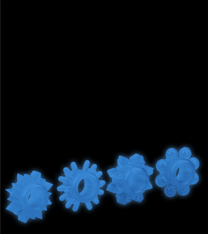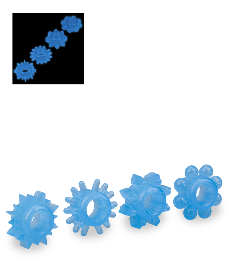 Die Penisringe aus elastischem TPE schenken Ihre festere und anhaltendere Erektionen. Gleichzeitig haben sie eine verzögernde Wirkung auf Ihre Ejakulation. Für den Überraschungseffekt sind diese Penisringe phosphoreszierend, das heißt, sie leuchten im Dunkeln! Verleihen Sie Ihrem Liebesspiel einen Hauch von Originalität! Die Cockringe sind mit Noppen und Rillen jeweils unterschiedlich gestaltet. Zum Glück müssen Sie sich nicht für einen Penisring entscheiden, sondern können mehrere Penisringe gleichzeitig an Penis und Hoden tragen.