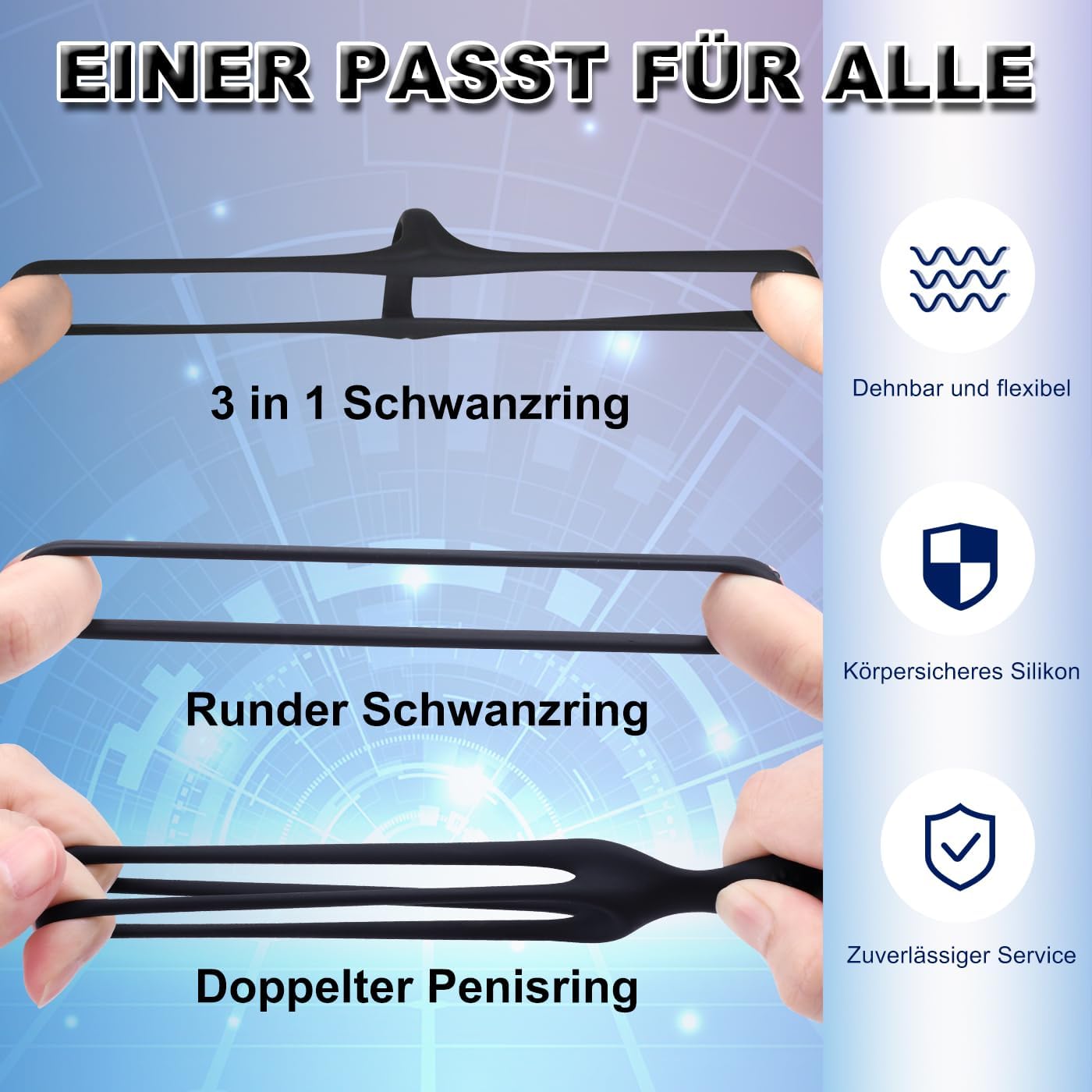 - 【3 Runde Penisringe】 Er ist flexibler als andere und kann in verschiedenen Positionen am selben Penis getragen werden, was die Empfindlichkeit erhöht. Dreifacher Sexspaß!