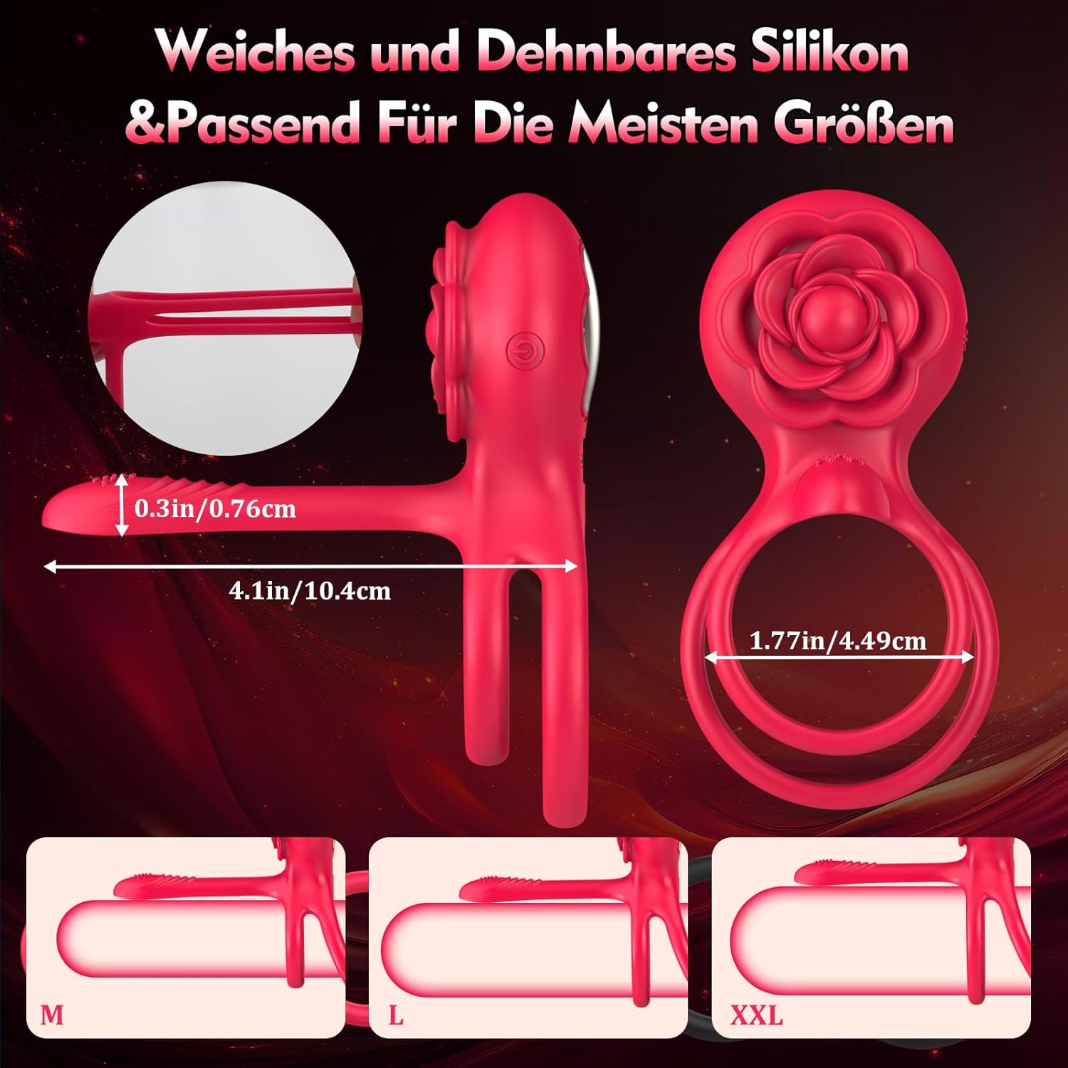 - 3-in-1-Multifunktions-Paar-Sexspielzeug - Dieser vibrierende Penisring ist ein tolles Sexspielzeug für Männer und Paare. Die parallelen Penisringe können Männern zu besseren Erektionen verhelfen, der vibrierende Schaft kann nicht nur die Dicke des Penis erhöhen, sondern auch den G-Punkt der Frau stimulieren, außerdem kann der Petal Clitoral Vibrator die Klitoris während des Spiels stimulieren und Paaren mehrere Orgasmen bescheren gleichzeitig.