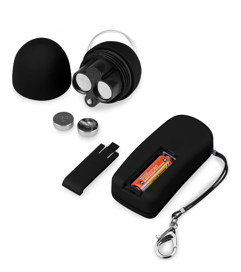 1. Legen Sie zunächst die Batterien in das Vibroei und die Fernbedienung ein. Achten Sie dabei auf die Angaben zu Plus-/Minuspol.