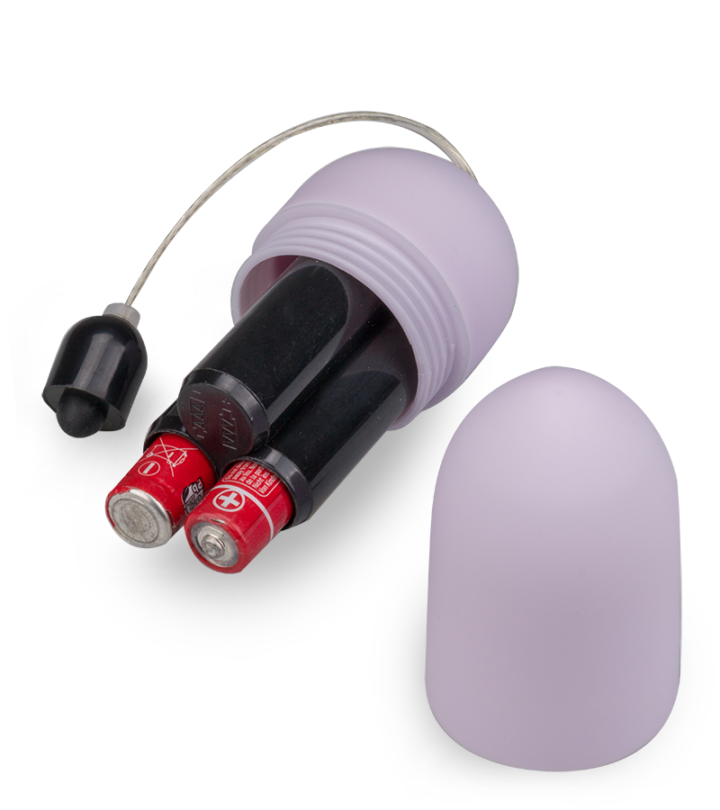 1. Schrauben Sie das Vibroei auf und legen Sie die beiden erforderlichen Batterien entsprechend der Angaben zum Plus-/Minuspol ein.